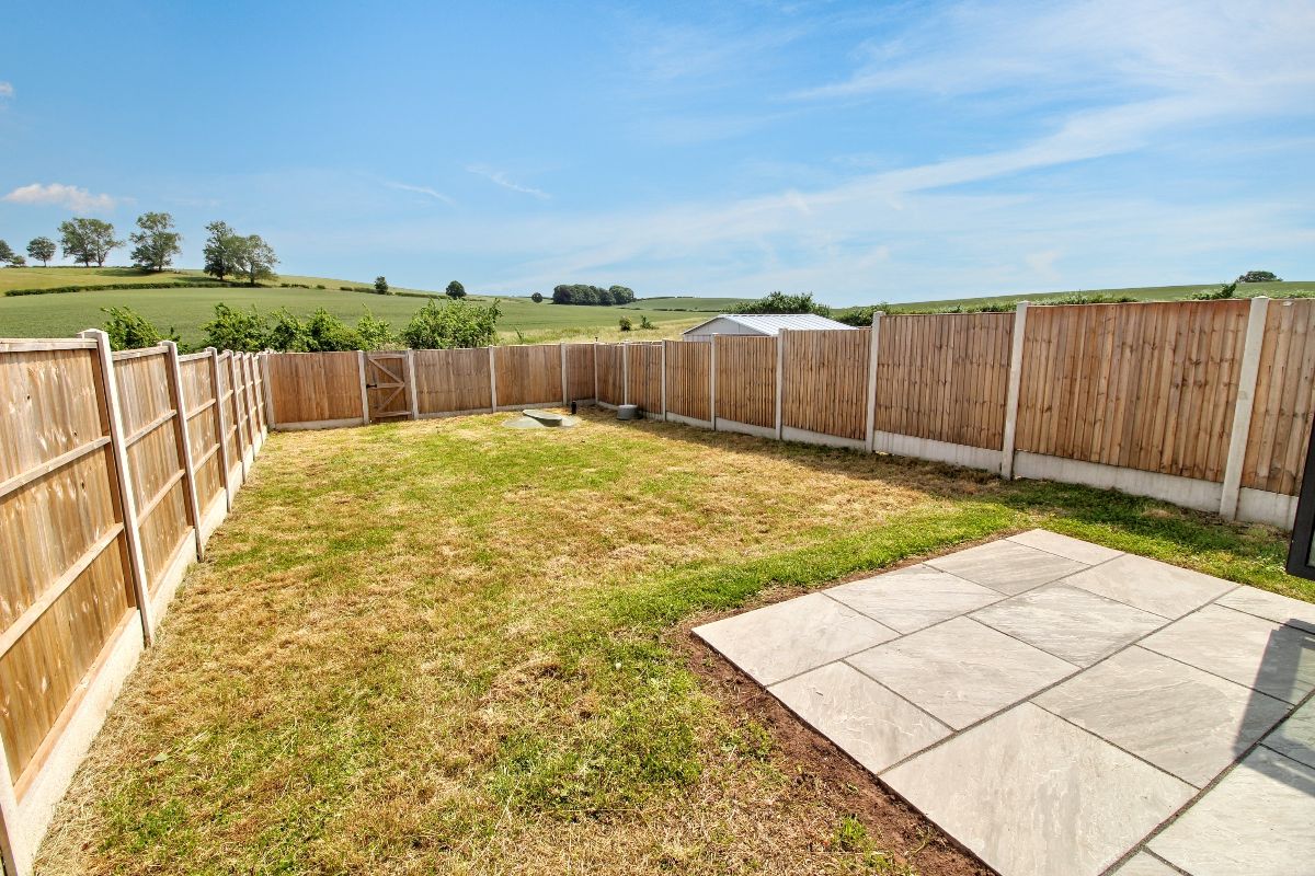 Paved patio area, garden enclosed with fence panels to sides and rear, rear gate for rear access.