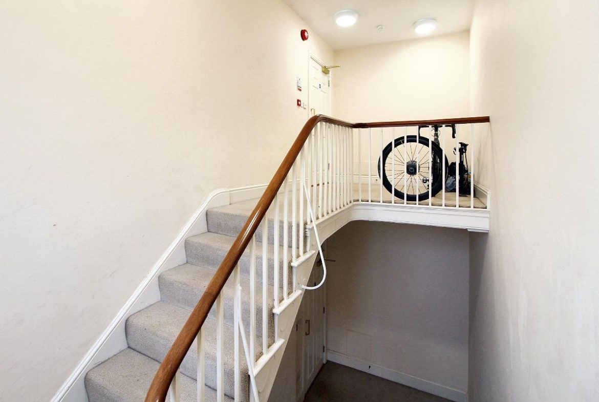 Rear door provides access to the communal porch area having a security intercom access, stairs leading to the top floor and apartment entrance door.