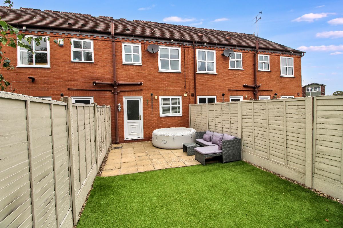 Paved patio area, Astro turf to rear, garden fully enclosed with fence panels, rear gate for access.