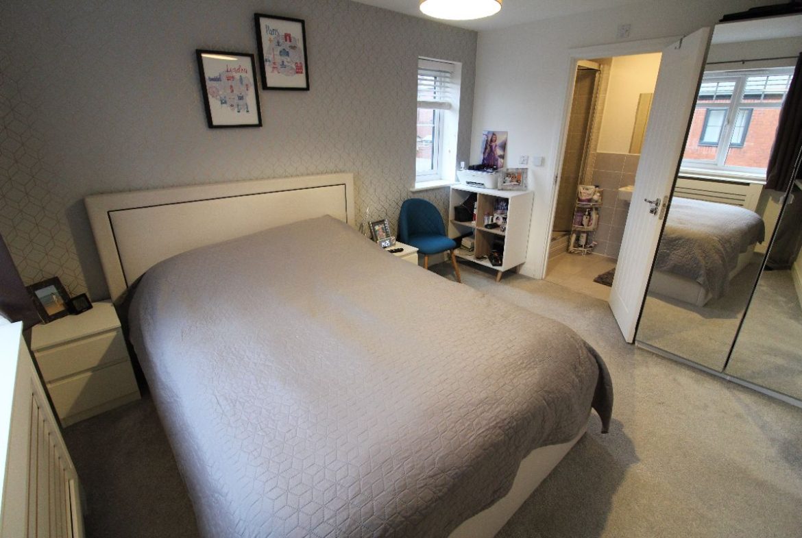 Upstairs, the main bedroom benefits from its own en suite, complemented by two further well-sized bedrooms and a family bathroom.