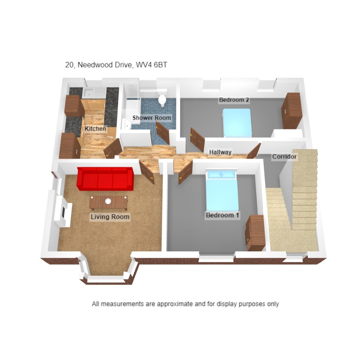Composite entrance door, doors leading to bedrooms 1, 2, lounge, shower room and kitchen, loft access, double radiator.